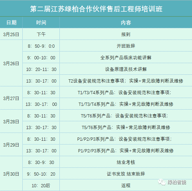 | 第二屆江蘇綠柏合作伙伴售后工程師培訓班即將開班啦! |